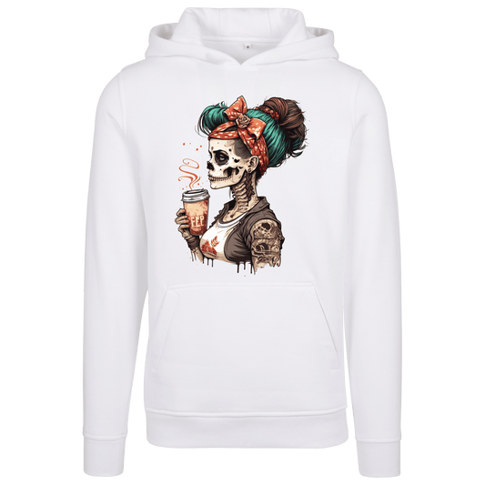 Skelettfrau mit Kaffee